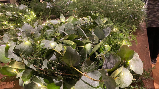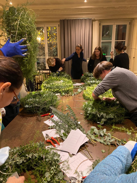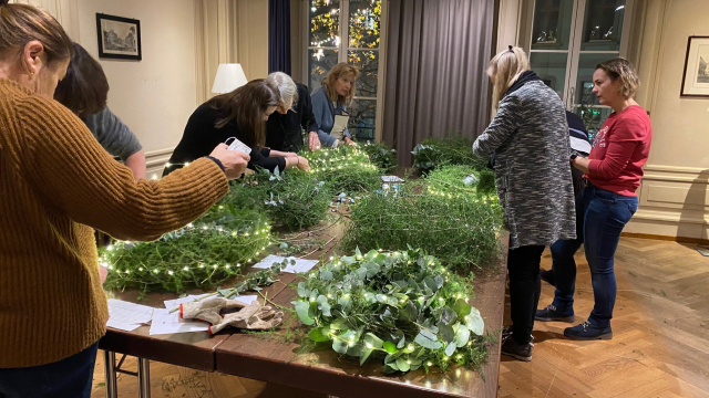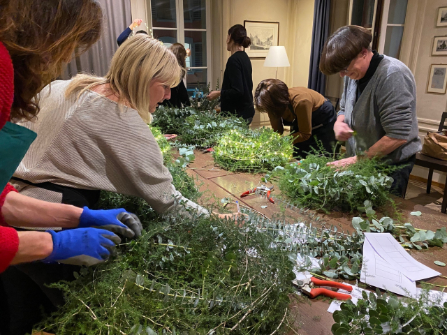 Etwa 20 Frauen trafen sich im «Bären» Langenthal. In der Garderobe war ein Büffet aufgebaut, im Sitzungszimmer stapelten sich Berge von wildem Asparagus, Eukalyptus und Lichterketten. Unter kundiger Anleitung von Brigitte Zaugg (Mitglied), ihrer Tochter und einer dritten Floristin lernten wir in zwei Schichten, einen Adventskranz nur zu winden. Was so einfach aussah, gelang dann tatsächlich allen - manchmal mit etwas Hilfe und Rat und vorher oder nachher gestärkt vom Apéro riche. Und fast niemand verzichtete auf die Lichterketten, die die Kränze so festlich und weihnächtlich wirken liessen. Ich freue mich auf den ersten Advent!
