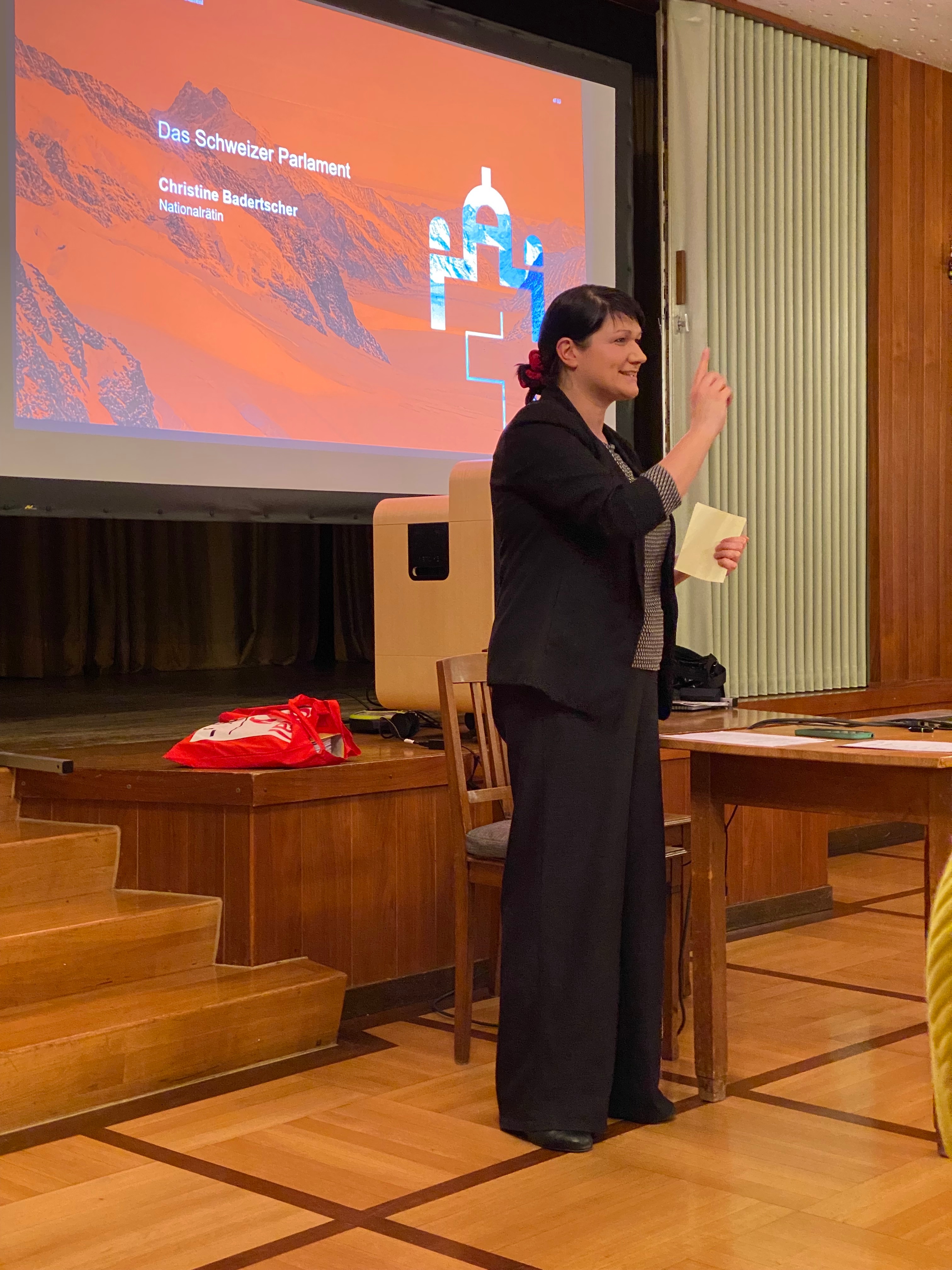 Anlässlich unserer HV stellt uns Christine Badertscher das Parlament, seine Aufgaben und ihre Arbeit im Bundeshaus vor, wo sie die zweiten vier Jahre als Nationalrätin der Grünen und als Vertreterin des Oberaargaus tätig ist.